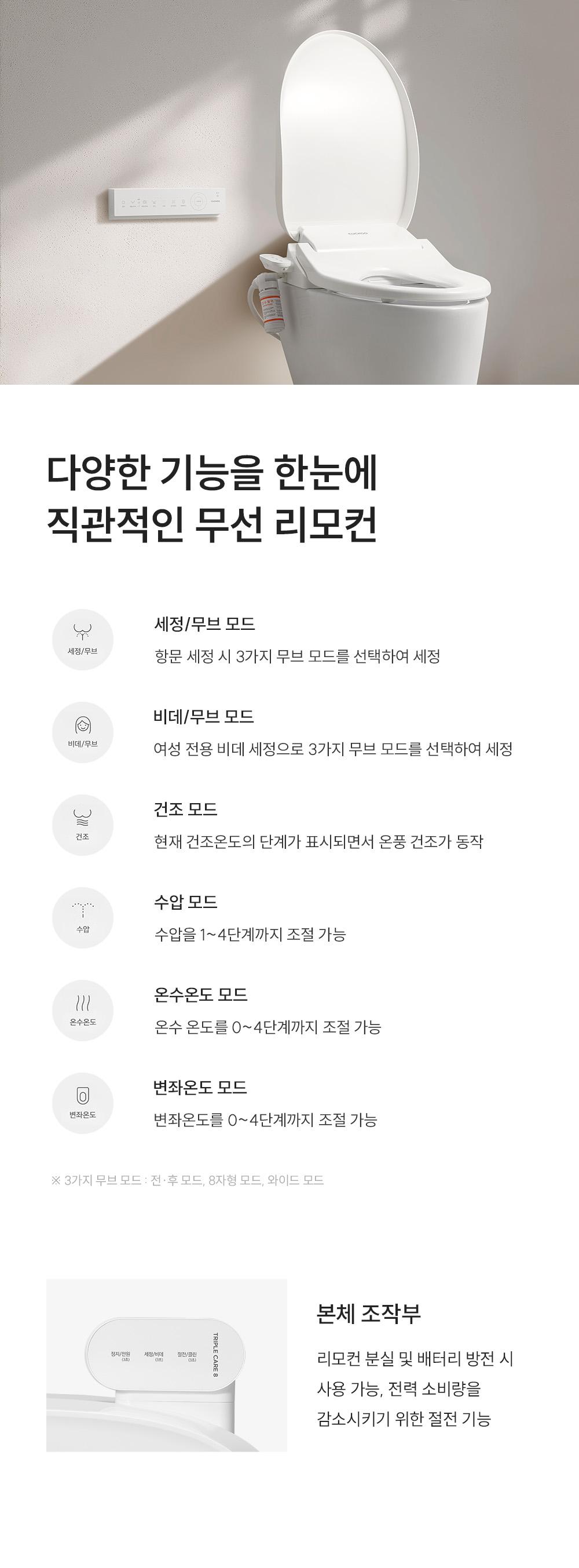 쿠쿠 인스퓨어 트리플케어8 리모컨 비데 CBT-QS1041RW