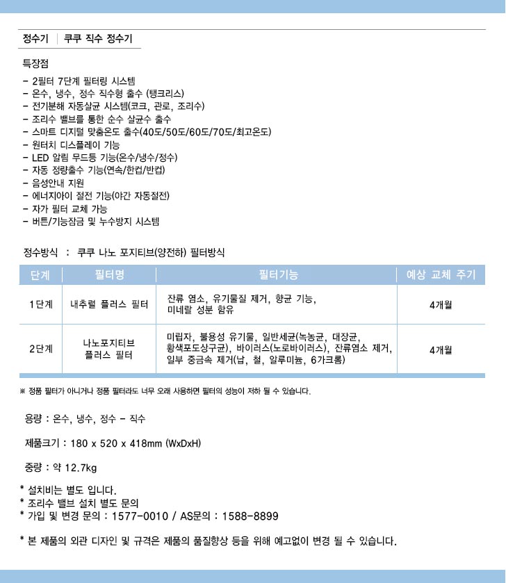 [4년 약정] 정수, 냉수, 온수, 직수, 나노테크